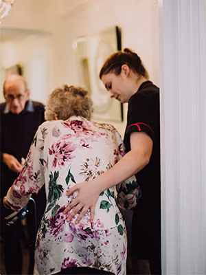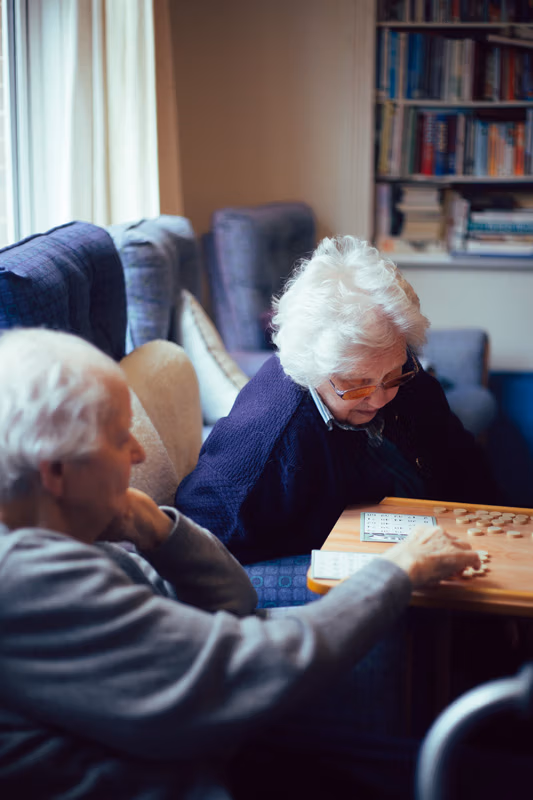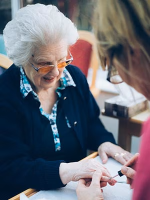 A resident helping to decorate at Christmas in the Richmondwood Care Home, Bournemouth
